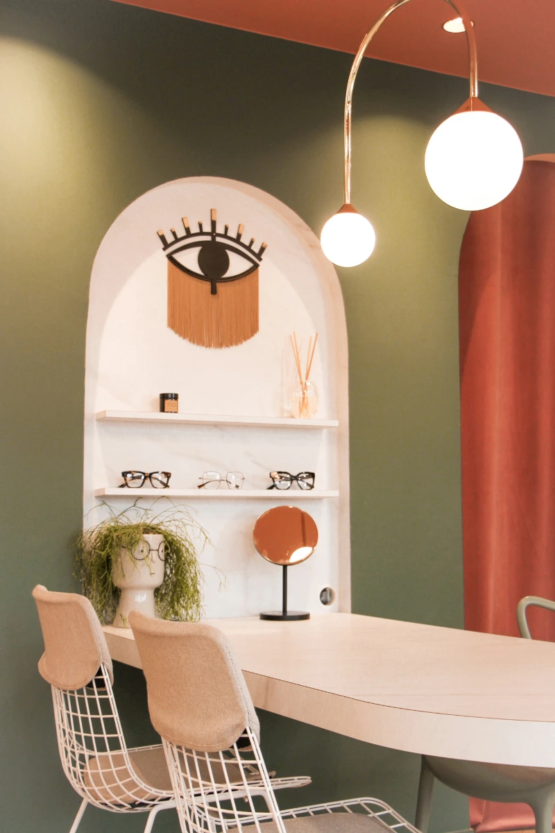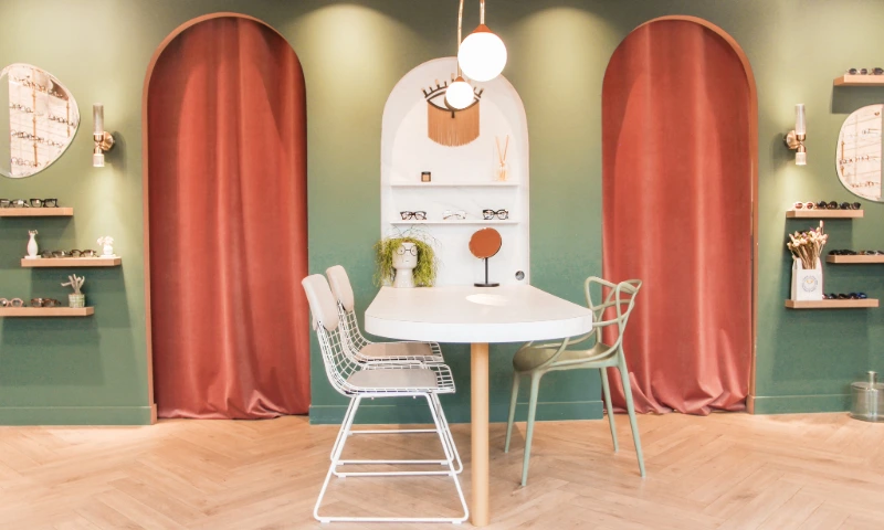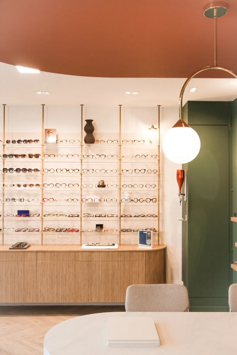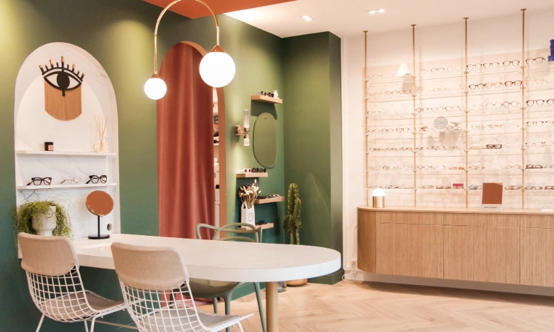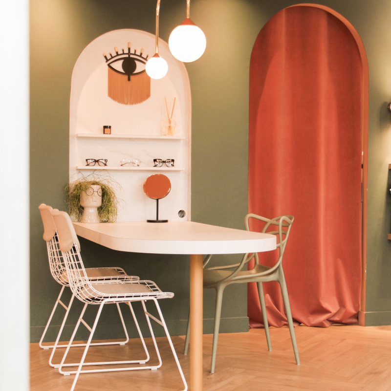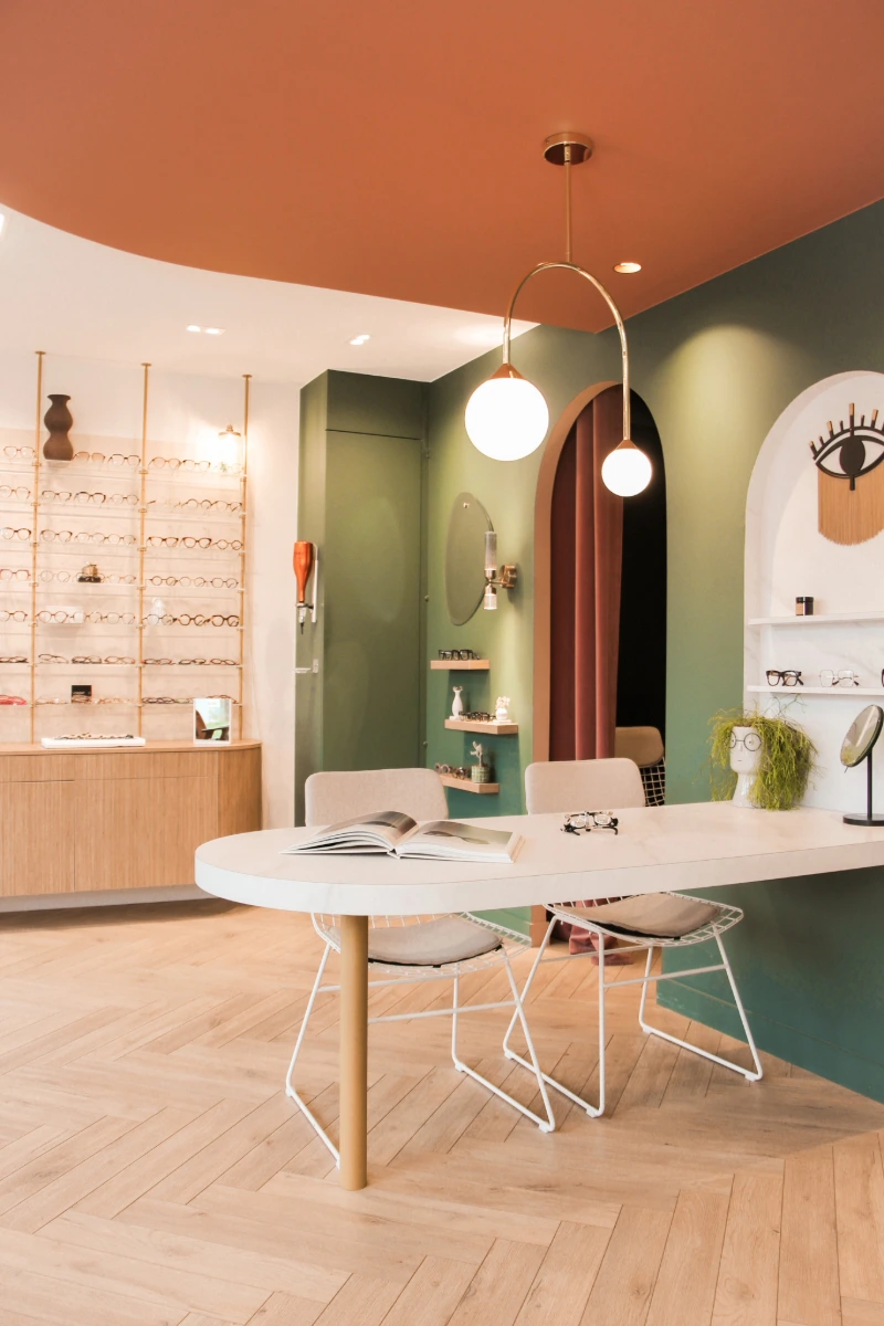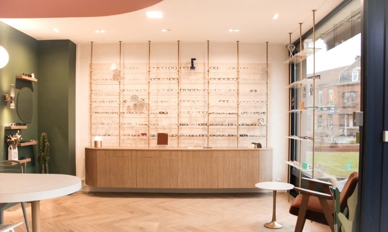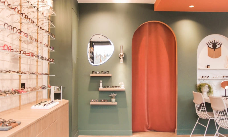 Ce local commercial a été entièrement repensé pour accueillir un magasin d’optique. L’objectif principal de notre client était de créer une atmosphère chaleureuse et conviviale, où l’on se sent « comme à la maison ». Chaque mètre carré a été optimisé avec soin pour tirer le meilleur parti de ce local de 37m². Matériaux chaleureux, teintes douces et détails soignés ont été choisis pour rappeler les codes de l’habitat et offrir une expérience client à la fois cosy et fonctionnelle.