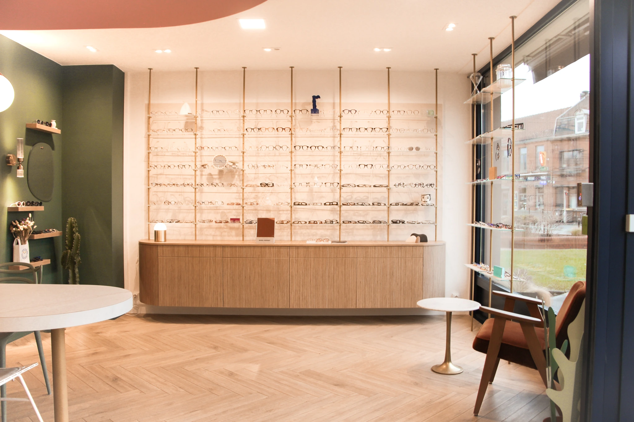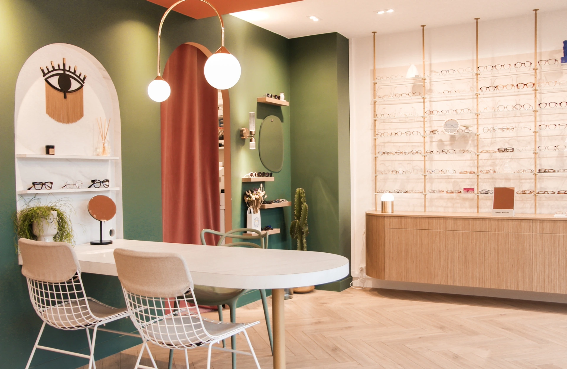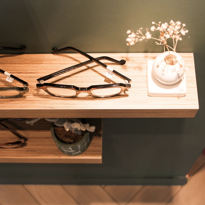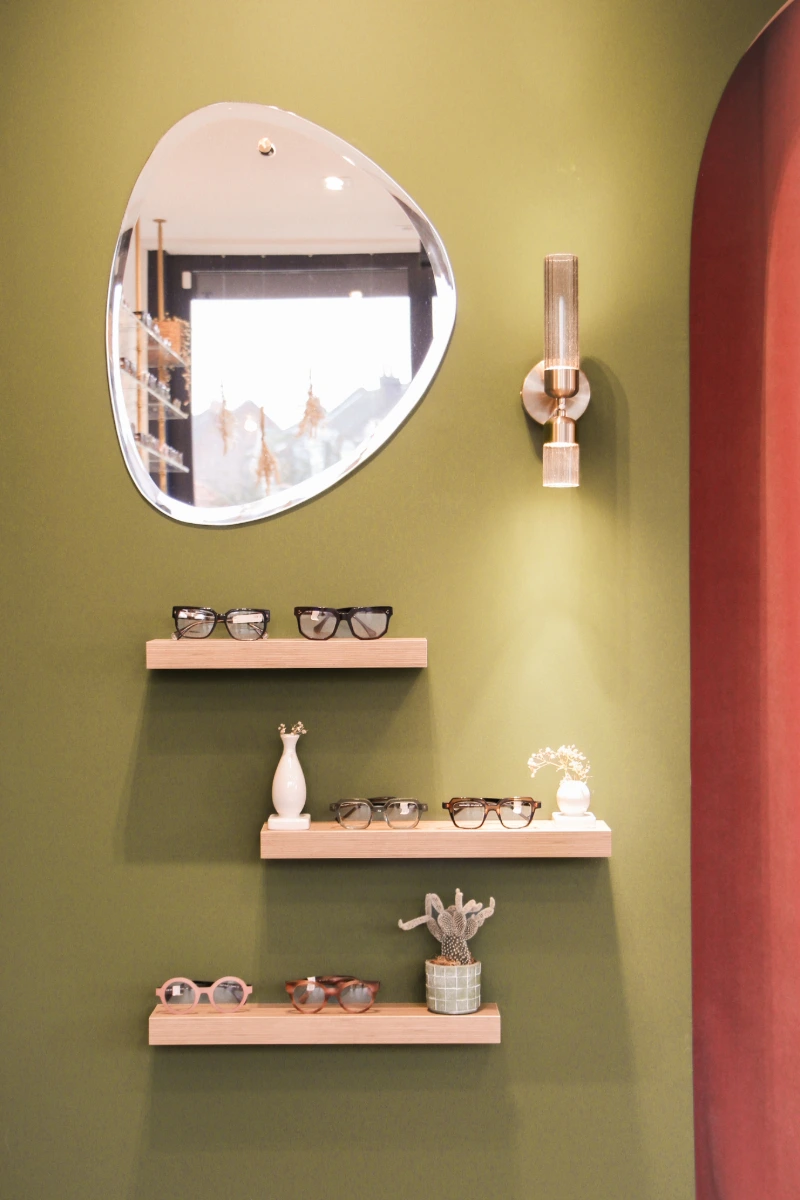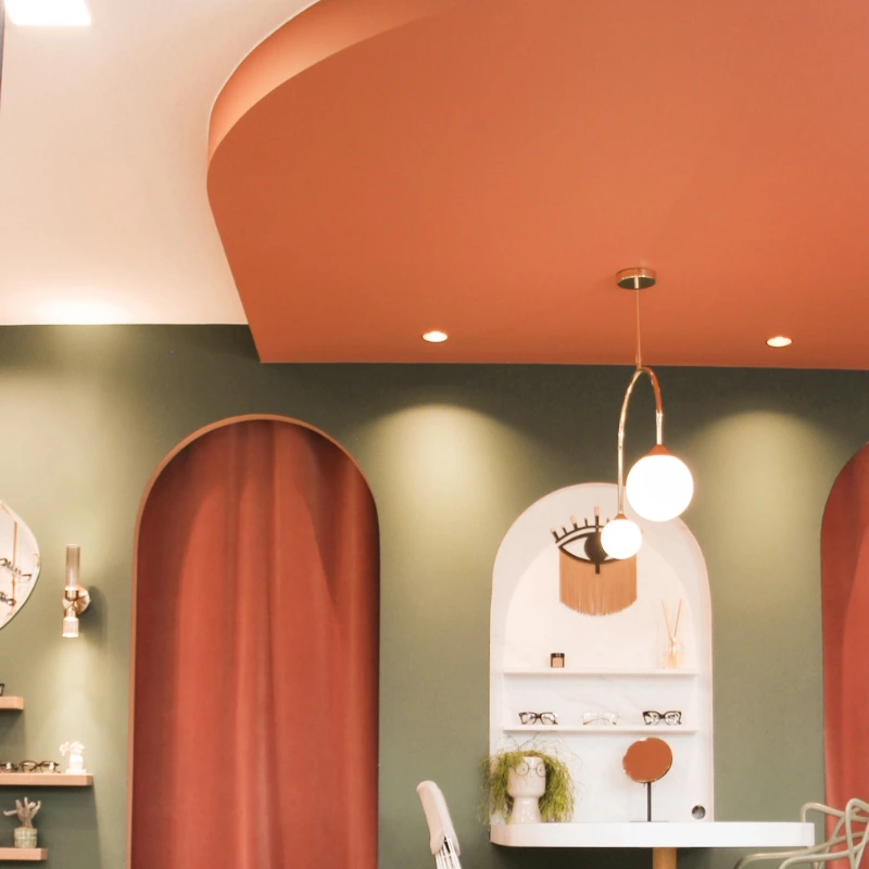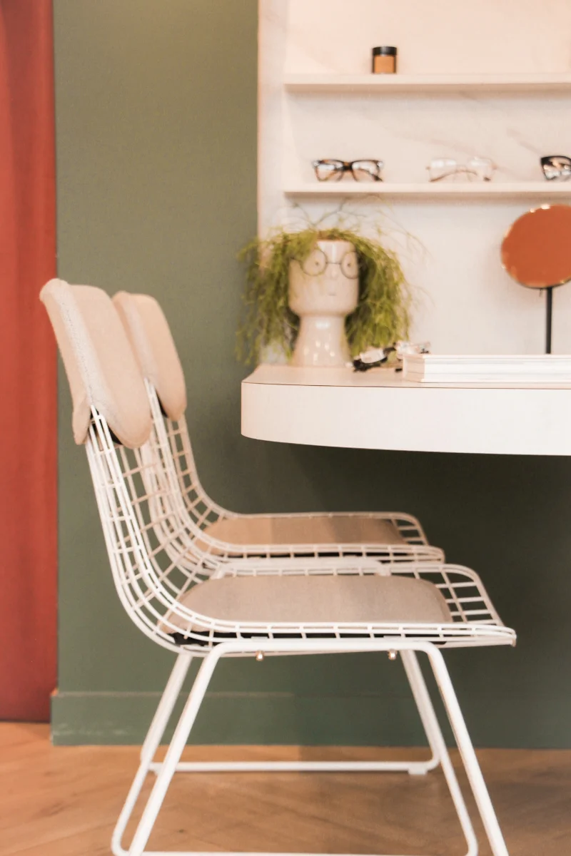 Ce local commercial a été entièrement repensé pour accueillir un magasin d’optique. L’objectif principal de notre client était de créer une atmosphère chaleureuse et conviviale, où l’on se sent « comme à la maison ». Chaque mètre carré a été optimisé avec soin pour tirer le meilleur parti de ce local de 37m². Matériaux chaleureux, teintes douces et détails soignés ont été choisis pour rappeler les codes de l’habitat et offrir une expérience client à la fois cosy et fonctionnelle.